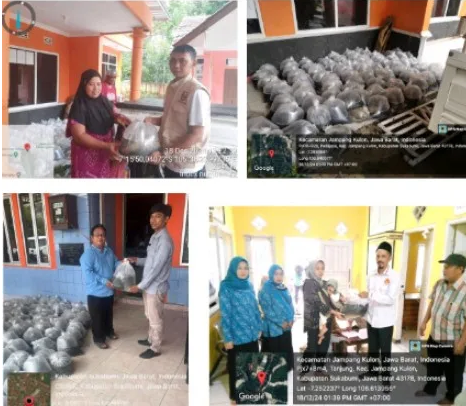 Proses distribusi bantuan dilakukan oleh Dinas perikanan dan dibantu oleh pemerintah desa dan kader posyandu di masing-masing wilayah sasaran, dan secara langsung menyalurkan bantuan kepada keluarga sasaran. Pada saat pendistribusian bantuan terdapat beberapa kendala yang kami hadapi. Hujan deras dalam beberapa hari mengakibatkan terjadinya bencana alam seperti tanah longsor, sungai meluap, dan pergerakan tanah di beberapa titik akses pengiriman yang terlewati, yaitu di Kecamatan Jampangkulon, Kecamatan Cidolog, Kecamatan Surade, dan Kecamatan Lengkong, sehingga berdampak pada terhambatnya pengiriman ikan ke lokasi. Selain itu komunikasi di lapangan menjadi terganggu karena tidak adanya sinyal akibat aliran listrik padam di wilayah Surade.