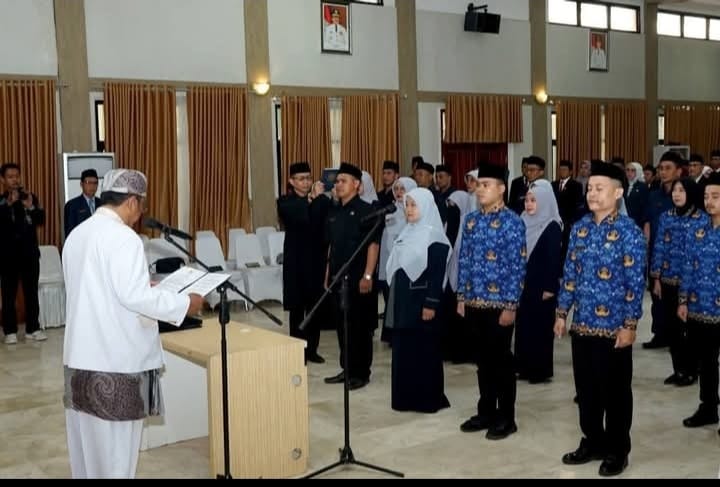 Sebanyak 48 pegawai negeri sipil di lingkungan pemerintah kabupaten sukabumi dilantik dan diambil sumpah janji jabatan fungsional oleh Bupati Sukabumi H Asep Japar, di Aula Sekretariat Daerah Kabupaten Sukabumi, Rabu (10/9/2025).